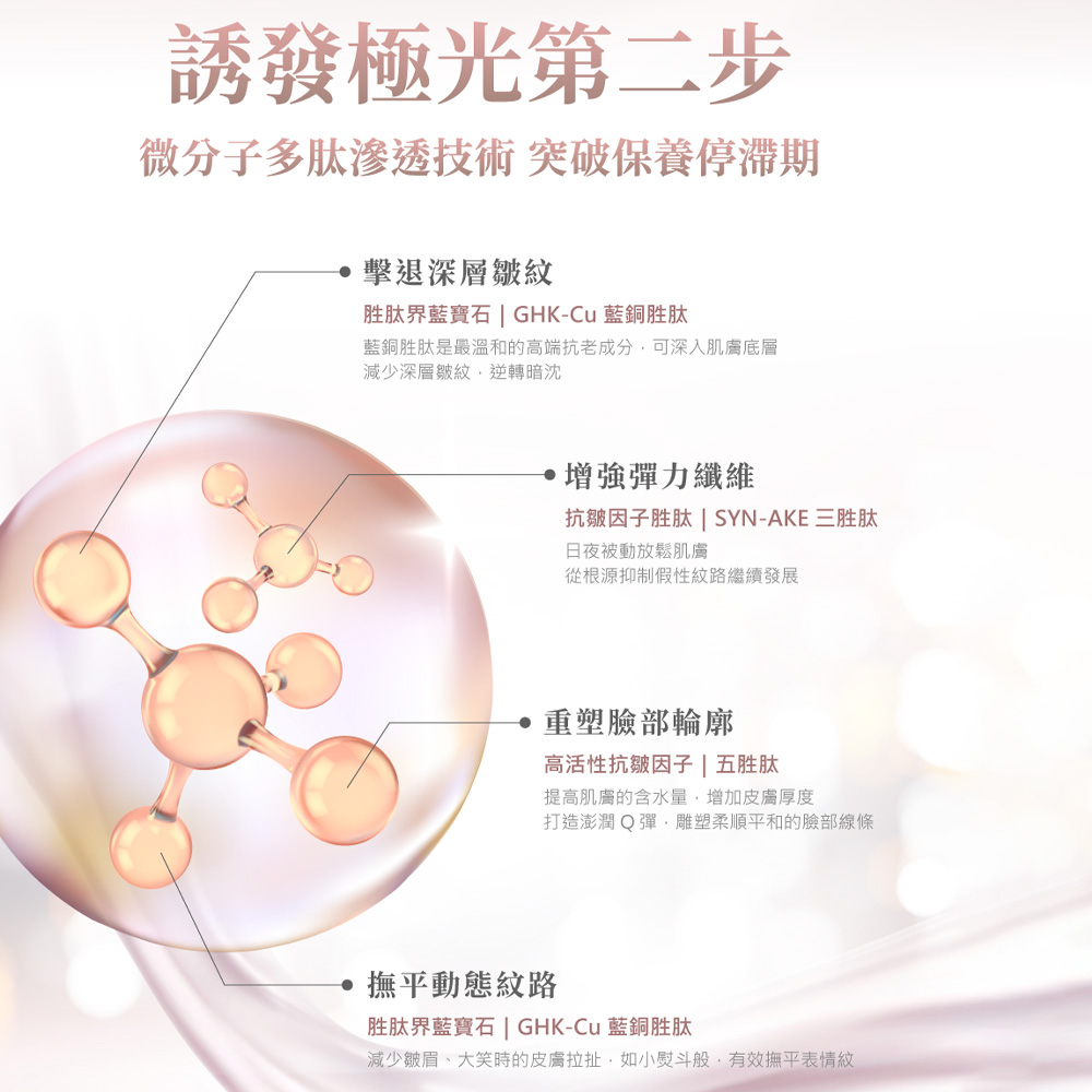 【誘發極光第二步 - 微分子多肽滲透技術,突破保養停滯期】