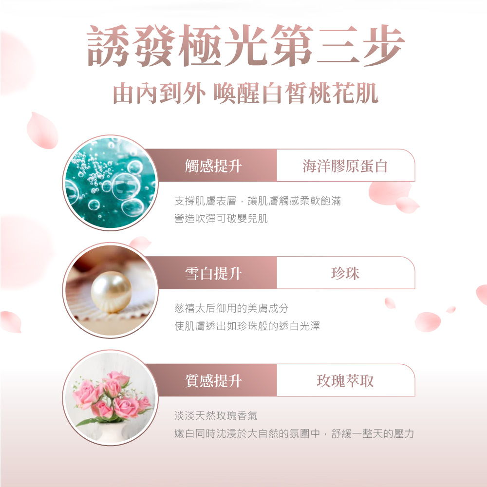 【誘發極光第三步 - 由內到外,喚醒白皙桃花肌】