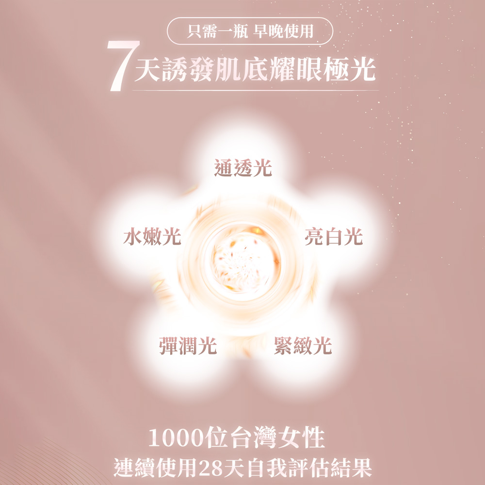 只需一瓶,早晚使用,7天誘發肌底耀眼極光